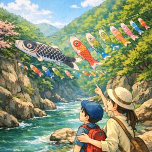 パパの思い出が詰まった鯉のぼり探しを中心に、道中の寄り道から足湯での大人の休息まで網羅した内容となっていますよ。